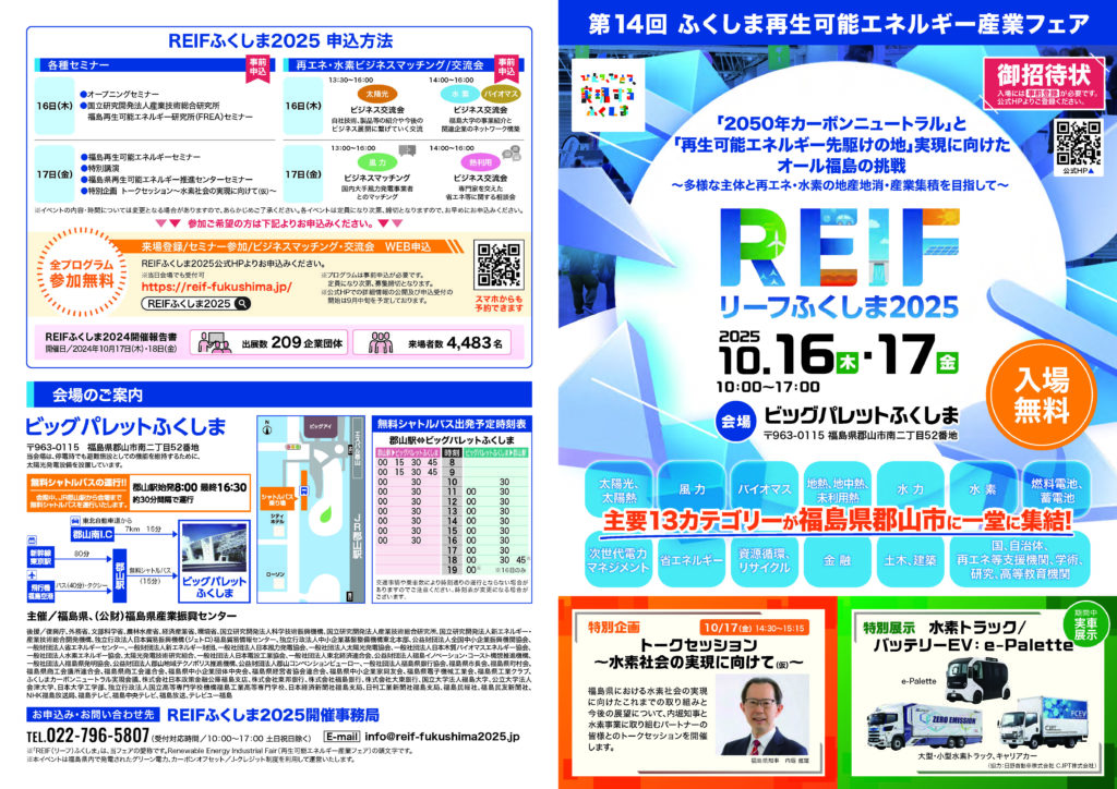 ビッグパレットふくしまで開催される「第14回 ふくしま再生可能エネルギー産業フェア(REIFふくしま2025)」に出展いたします